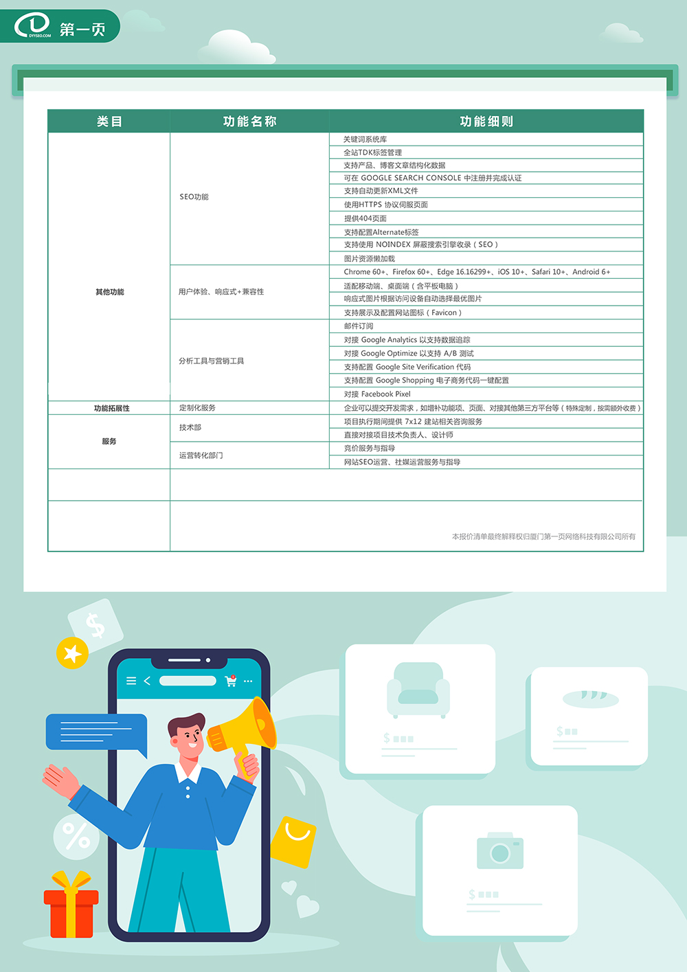 該產(chǎn)品完全脫離平臺(tái)管控,以企業(yè)為主導(dǎo),獨(dú)立掌控行業(yè)大數(shù)據(jù)、用戶資源;強(qiáng)大的設(shè)計(jì)力量和技術(shù)團(tuán)隊(duì) · 響應(yīng)式商城系統(tǒng) · SEM + SEO雙向推廣 · 一對(duì)一專業(yè)服務(wù);專業(yè)團(tuán)隊(duì)一條龍服務(wù),助你打造頂級(jí)在線品牌商店,多團(tuán)隊(duì)配合站點(diǎn)營(yíng)銷與推廣,讓您的訂單轉(zhuǎn)化更高效。